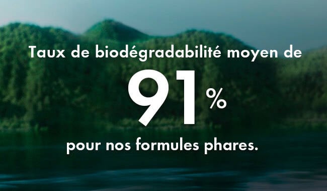Nous avons réussi à atteindre un taux de biodégradabilité moyen de 91% pour nos formules phares. Nous nous engageons également à garantir qu'aucun de nos gommages ne contienne de microbilles.