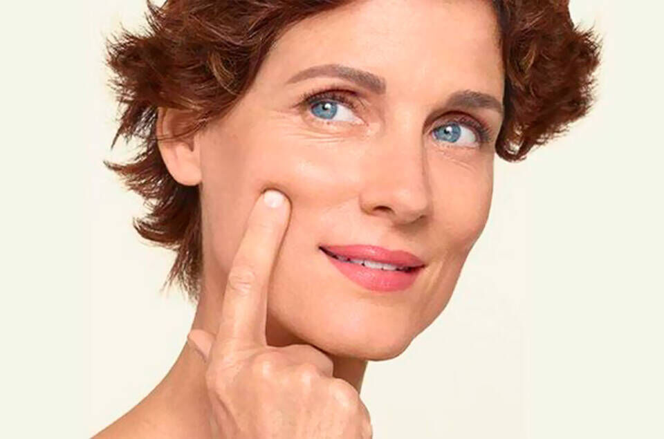b.En choisissant un rituel quotidien de soin de la peau adapté à la peau préménopausée et la postménopausée– une protection solaire régulière avec un FPS résistant à l’eau